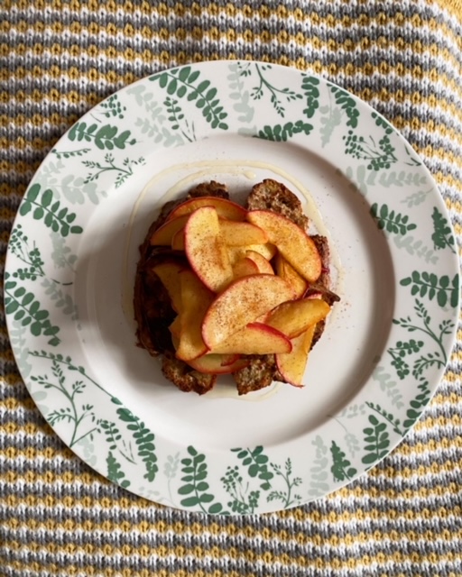 Get started with the apple first. De-core the apple and cut into segments. Add the oil, syrup and cinnamon to a frying pan and heat on low. Add the apples to the pan and stir occasionally.