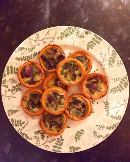 Mini Onion Quiches with Tomato Pastry